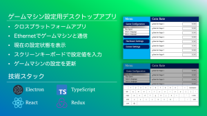 Development 開発実績 タッチパネル付き試験用器具 Raspberry Pi上で動作する、Python + Kivyで作成されたタッチパネル用UIアプリケーション Arduinoへの入出力処理用プログラムの組み込み開発 Twitter情報表示iOSアプリ SwiftUIでのiOSアプリ開発 バックエンドでTwitter APIの実行 GoogleMaps APIでの位置情報取得およびマップへの表示 ゲームマシン設定用デスクトップアプリ Electronを用いたクロスプラットフォームアプリ TypeScript + React + Reduxでのアプリ開発 計量管理用Windowsアプリ C# + WPFでのWindowsアプリケーション開発 ドイツ製計量器とのシリアル通信による計量状態のリアルタイム表示 計量結果をデータベースに保存およびPDF出力 施工表示・帳票出力Windowsアプリ C# + WPFでのWindowsアプリケーション開発 建設機械に設置されたセンサー情報を読み込み、施工状態のリアルタイム表示 多種の帳票に柔軟に対応したExcel出力昨日 Salesforce導入コンサル Salesforceの新規導入または既存Salesforceに対する新規機能の追加 業務フローの定義 業務フローに合わせた外部パッケージの導入 お問い合わせ